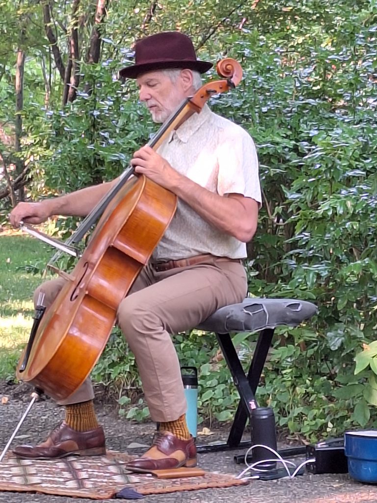 Walking back through Lithia Park with a coffee in hand, I heard music. At first, I couldn’t find the source. Following a path through the park felt like following the sound of my life’s soundtrack, and I wanted to know what the next scene would look like. At the end of the path sat a man wearing a red hat, playing a cello. This was the defining moment when I not only fell in love with the sound of the cello, but also with the spiritual joy of impromptu live music. His name was Daniel Austin Sperry. The song he played I remembered best was Butter Yellow Lullaby Dance for Carol. He said it was a song he wrote for a lady who liked to paint every home she lived in yellow.
